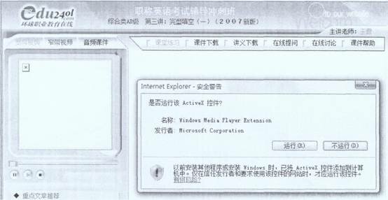 音频课件是老师讲课的录音,以ASF格式存储;视频课件除老师的录音外,可以看到老师讲课的图像,以ASF格式存储。