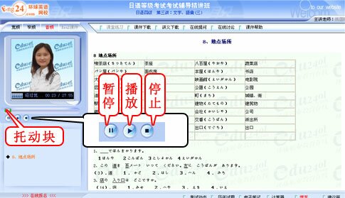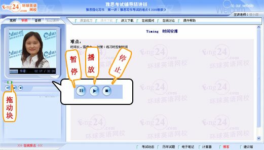 听课的过程中是可以暂停的,网校的课件播放有两种形式,详见图解。
