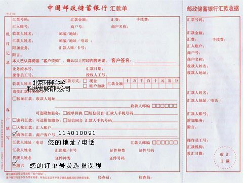 汇款单附言处请写明:1.报名后产生的订单号 2.您所选报的课程